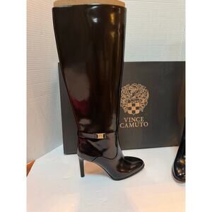Step out in style with these Vince Camuto Skylie Knee High Boots! These boots are ready to elevate your wardrobe. Brushed logo hardware and rich leather distinguish a knee-high boot balanced by an almond toe and tapered heel.