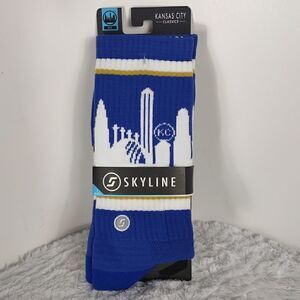 These New blue and white Skyline "Kansas City" athletic crew socks are a one size fits most. All offers welcome.
