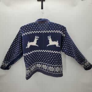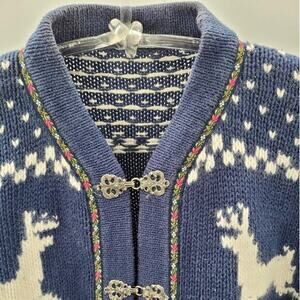 Skyr Vintage Reindeer Nordic Fair Isle Metal Toggle Cardigan Sweater Jacket