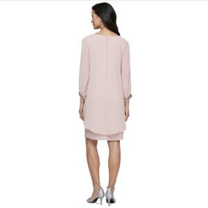Sl Fashions Women's Tulip-Overlay Sheath Dress, Faded Rose, NWT