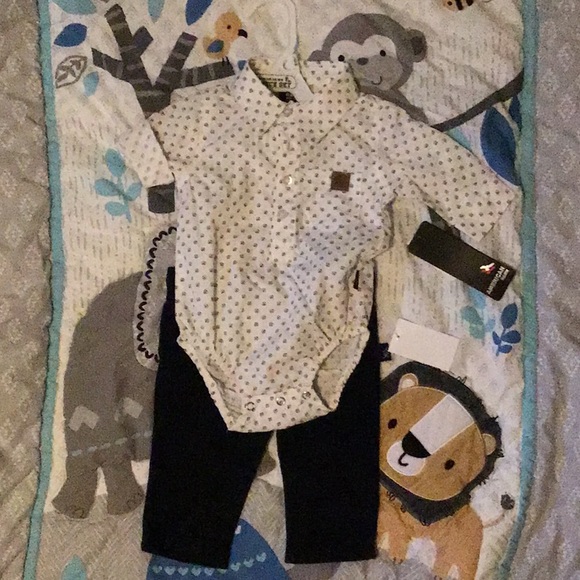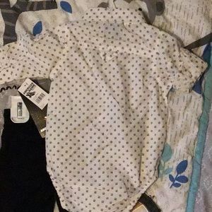 White long sleeve 60%cotton 40%polyester. Navy blue pant 55% cotton 45% polyester.