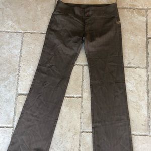 Very good quality brown slacks. Subtle pin stripes.