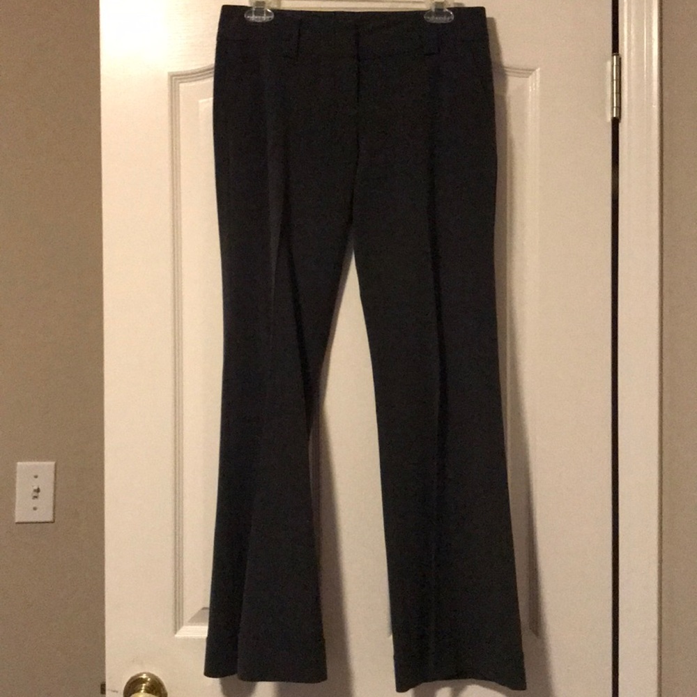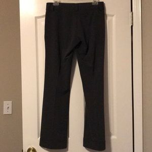 Gray low rise slacks with cuff pant leg. Approx. 30 inch inseam.