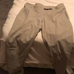 To your ankle, tan, thin, nice dress pants for the office, or you can dress them up if you were going out! Never worn, just tried on!