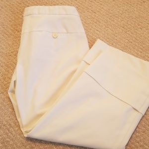 White, dressy, capri slacks, lined, cuffed