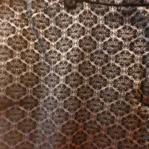 Darling black and silver print slacks. Dress up or dress down with a pair of cute flats or flattering heels either way will look sharp and make a statement!