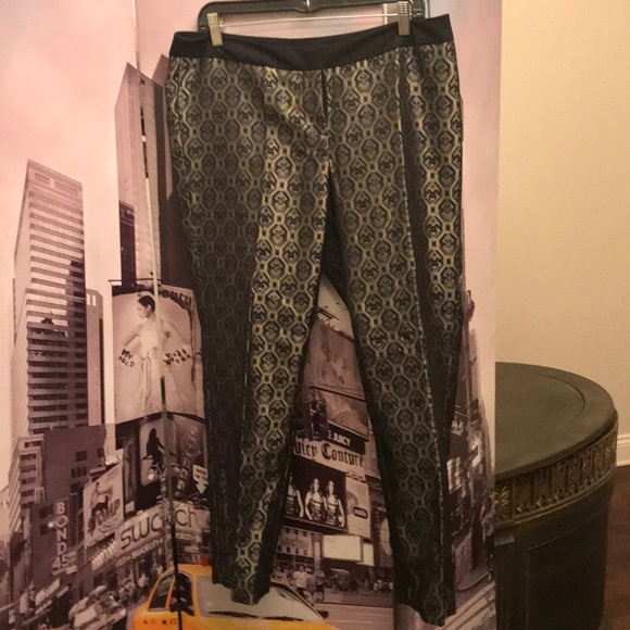 Black and gold sateen slacks.