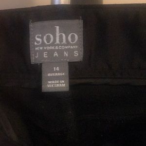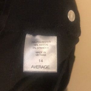 Stretchy slacks. Black. buttons and zipper.