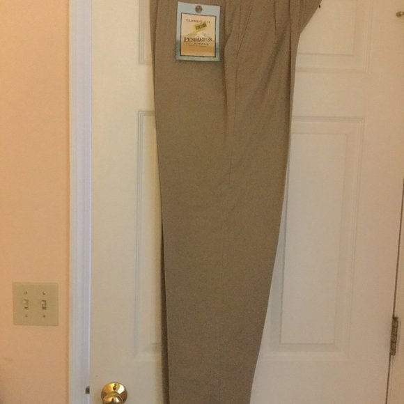 These are pleated and straight leg. I don't have any more pics but I can take some if you are interested.
