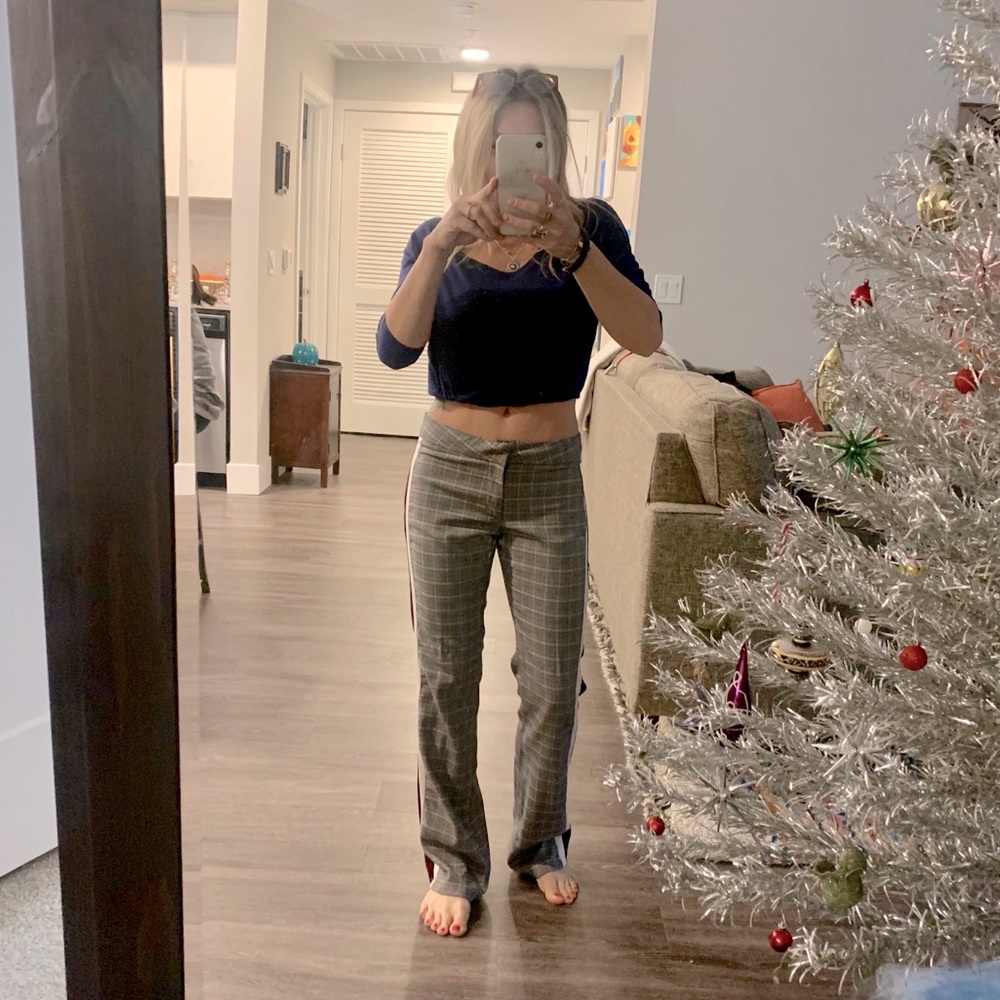 Straight leg pants, black/white/merlot colors. Never worn, however washed. Size S. Front & back pockets. Add a little to your closet :)