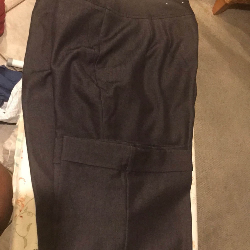 Dark brown comfortable fit flowy beautiful slacks that are dressy and professional. Excellent for work or business meeting excellent condition. Missing one snap shown in photo.