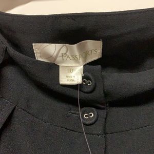 Black dressed slacks by Passport. Size 10. Crouch measures 31 inches and from waist to bottom of slacks the total Length is 43 - 44 inches