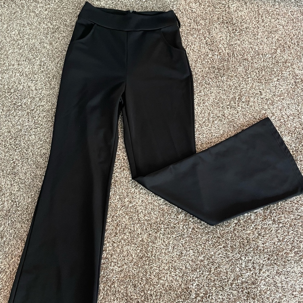 Very soft material, pockets and a little flare at the bottom