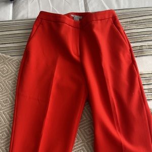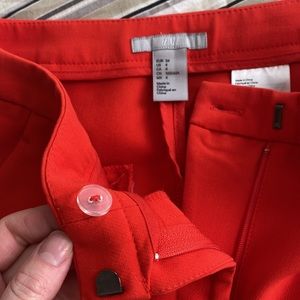 Slacks with zipper/clasp/button close. Color is between a red and orange. Worn once