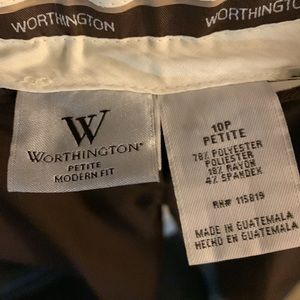 Worthington brown slacks, 10P, zipper, 2 hooks & loops plus button, accent back pockets w/ buttons w/ belt loops.