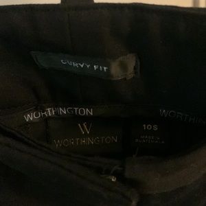 10S curvy black slacks, accented back pockets, front pockets, belt loops, zipper, clasp & hooks and also a button