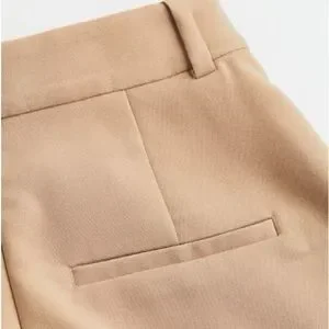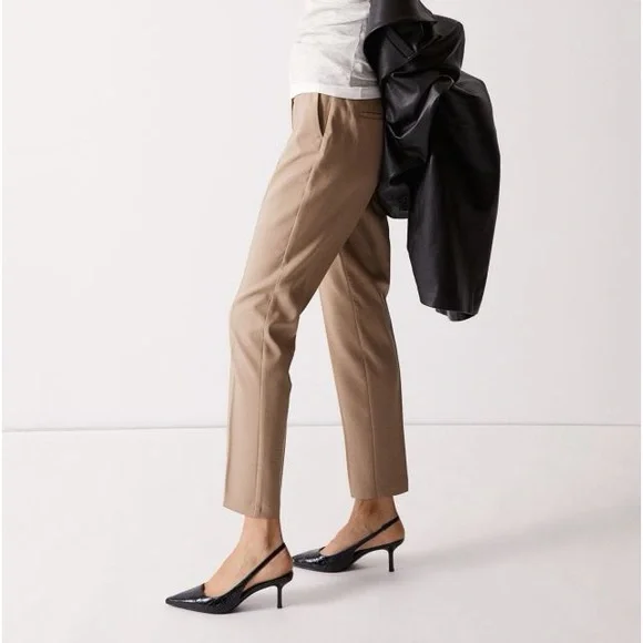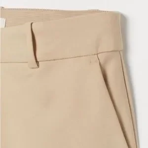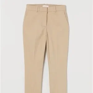 Ankle-length slacks in woven stretch fabric. Regular waist, concealed elasticized waistband, and zip fly with concealed hook-and-eye fastener. Side pockets, mock back pockets, and tapered legs. Y favorite but they fit like XS.
