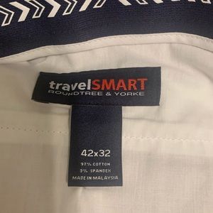Roundtree & Yorke mens kaki slacks travel smart with comfort waist band 42x32. Pleated front. No tags, but never wore.