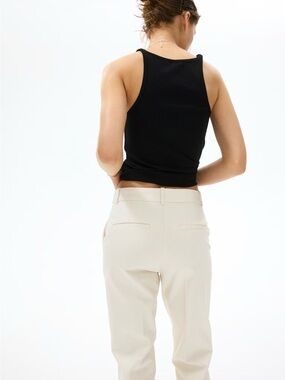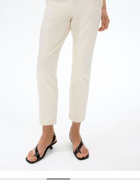Classic cropped slim trousers in cream. Designed for a clean, tailored silhouette. Comfortable stretch fabric for all-day wear. Versatile style that pairs with casual or dressy tops.