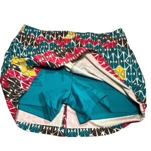 Slaezenger Golf Tennis Skort Geometric Print Size 10 Teal Pink Yellow Activewear