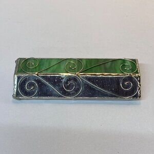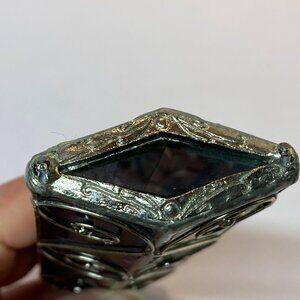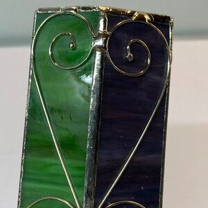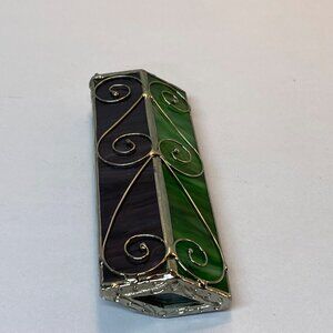 Slag Stained Glass Kaleidoscope Purple Green Art Glass Silver Swirl Accents
