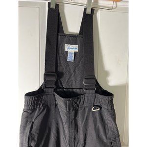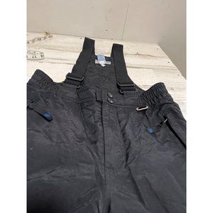 Slalom children’s black suspender snow pants size medium. Zips and snaps on front. Has two zip pockets in front. Adjustable suspenders. Waist measures approximately 14” side to side. Waist to hem measures approximately 33”. Made in Bangladesh. Good pre-owned condition.