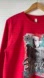 Get festive with a spooky twist! This bright red Bella + Canvas long sleeve shirt features a fun holiday-horror mashup — a masked figure in a Santa hat surrounded by snowflakes with the phrase “Slashin’ Through the Snow.”