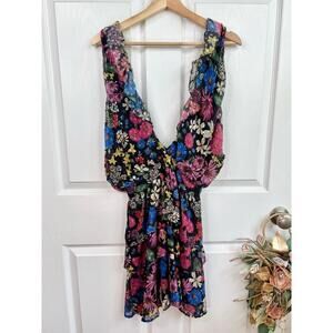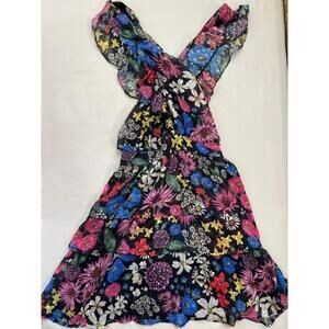 Slate And Willow Dress Womens Size Small Multicolor Sleeveless Floral Deep Vneck Ruffle Hem Romantic