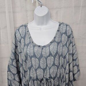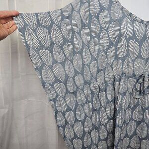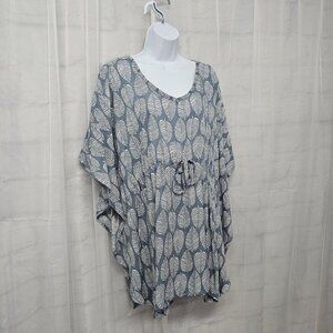 Slate Blue Leaf Print Blouse Swim Cover Boho Beach XL+
