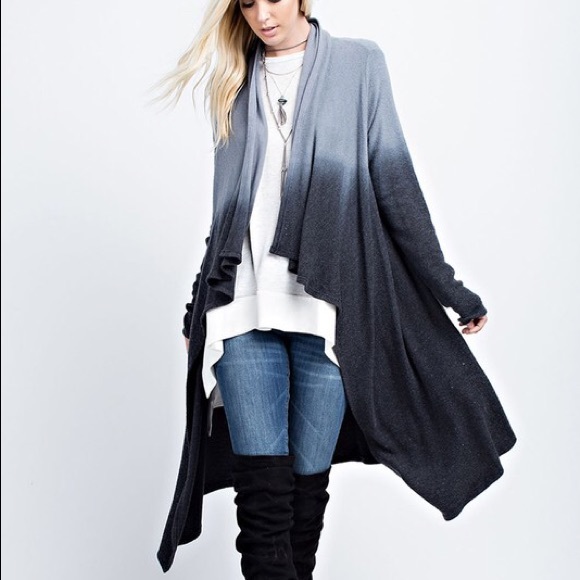 Cozy long sleeve gray-to-charcoal ombré cardigan