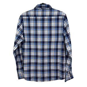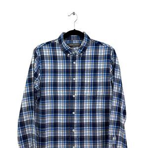 Slate & Stone Button Down Plaid Shirt Long Sleeves Blue White Orange Men Size S