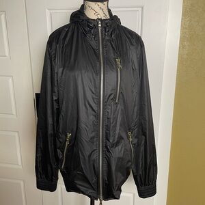 Slate & Stone jacket, men's jacket, black windbreaker, hooded jacket, lightweight jacket, casual outerwear, zip-up jacket, sporty jacket, water-resistant jacket, sleek jacket, modern outerwear, men's fashion, versatile jacket, breathable jacket, stylish windbreaker, everyday wear, comfortable jacket, outdoor jacket, practical outerwear, functional fashion.