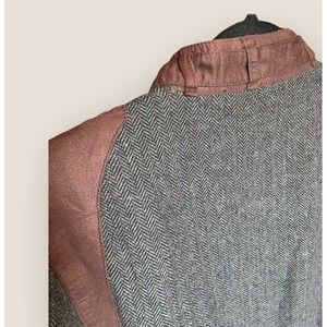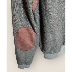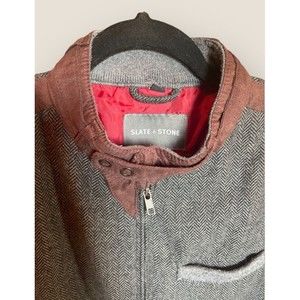 Slate & Stone Poly Wool Blend Jacket Gray Herringbone W/Brown Accents Mens Small