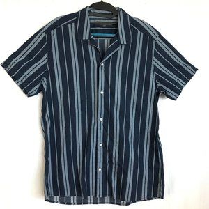 Slate & Stone Shirt Men Large Blue White Striped Button Up Collared Short Sleeve