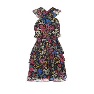 Slate & Willow Black Colorful Floral Sleeveless Ruffle Mini Dress