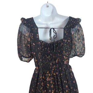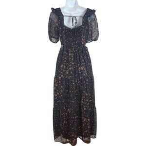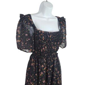 Slate & Willow Black Floral Puff Sleeve Smocked Maxi Dress Size Small