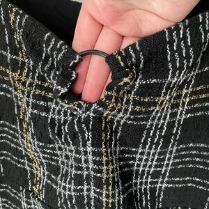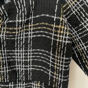 Stylish black plaid romper with a chic design. Perfect for any occasion.