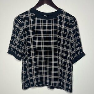 Slate & Willow Black and White Plaid Short Sleeve Top