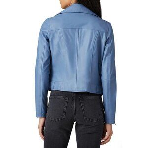Slate & Willow Blue Classic Leather Zip Front Moto Jacket Women's Size Small S