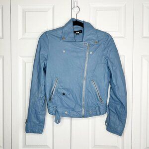 Slate & Willow Blue Classic Leather Zip Front Moto Jacket Women's Size Small