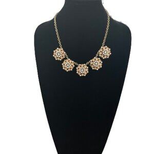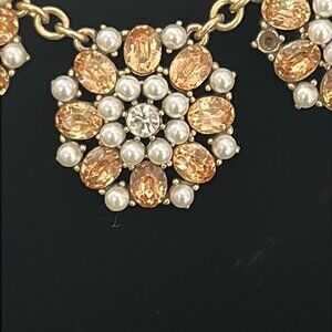 Vintage inspired Gold plated statement necklace with five blush crystal and pearl clusters. Lobster clasp closure. 18" - 20" Adjustable length. Received as a gift - never worn.