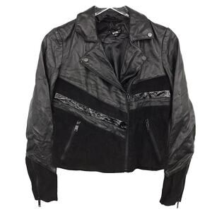 Slate & Willow Colorblock Moto Jacket S Womens Suede Leather Asymmetrical Zip Black $795