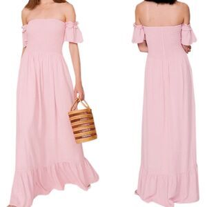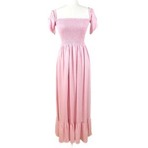 Slate & Willow Delicate Pink Maxi Dress Size M Shirred Bodice Off-the-Shoulder