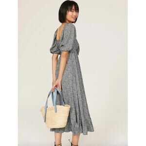 Slate & Willow Dress Womens Small Black White Ditsy Floral Tie Front Midi