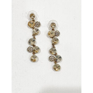 Gold plated drop earrings with solid and pave encrusted circle accents. Post backs for pierced ears. 2" long.