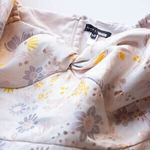 Mixed blooms bring retro vibes to this shapely Slate & Willow mini styled with puffed sleeves and an A-line skirt. $315 retail.