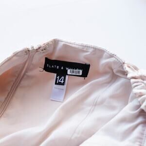 Pink printed satin (100% Polyester). Hourglass. Sweetheart neckline. Short sleeves. Back zipper closure.
