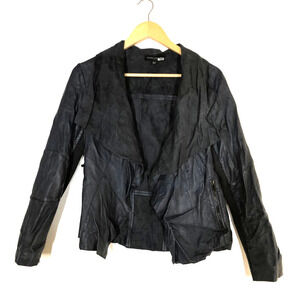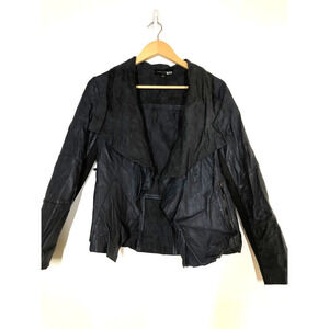 Slate & Willow Jacket Drape Moto Genuine Leather Navy M