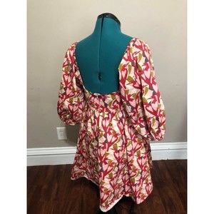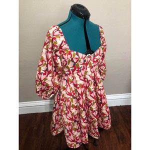 Slate + Willow Love Bird Mini Dress, Pink Puff Sleeve Square Neck Dress, sz 10