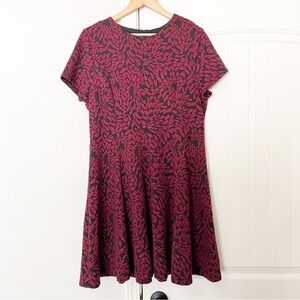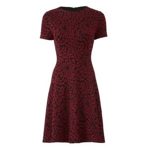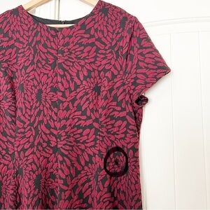 Merlot knit (60% Cotton, 3% Polyester, 1% spandex). Hourglass. Short sleeves. Crew neckline. Hidden back zipper closure.